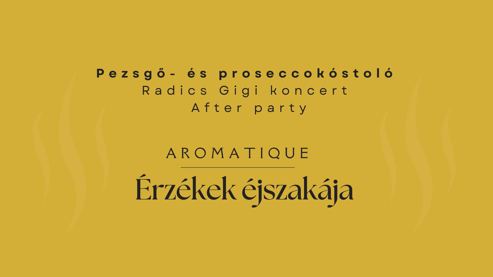 Pezsgő, prosecco, borkóstoló és élményállomások egy különleges felfedezőút keretében, amelyet Radics Gigi élő koncertje és az Aromatique After party tesz teljessé.